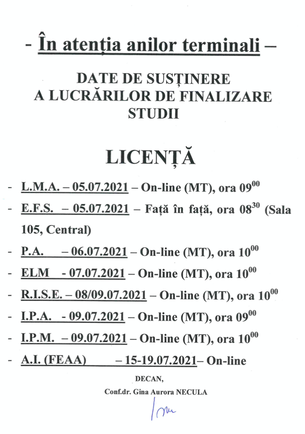 LF - 12.07.2021 - față în față, ora 08.30 (sala 105, Central)
