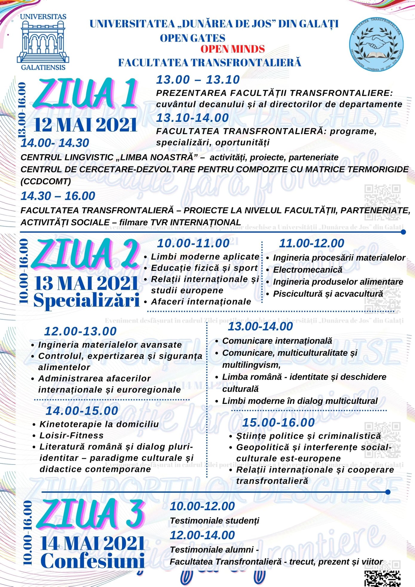 Facultatea Transfrontalieră a Universității "Dunărea de Jos" vă așteaptă, cu drag, să accesați pagina de Facebook, precum și canalul de Youtube, pentru a urmări activitățile propuse de către noi în cadrul evenimentului de anvergură amintit, conform programului anexat.